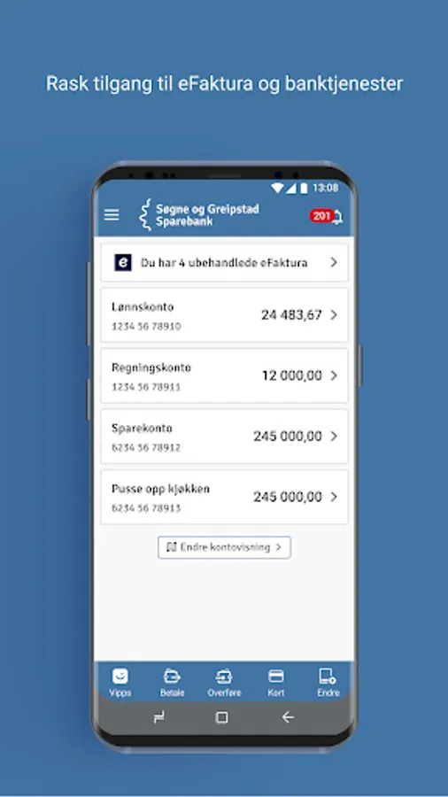 Make everyday life easier with the mobile bank from Søgne and Greipstad Sparebank. You can check your balance, transfer between your own accounts, pay bills and process eF invoice while on the go. Login is simplified using 4 digit code or fingerprint.