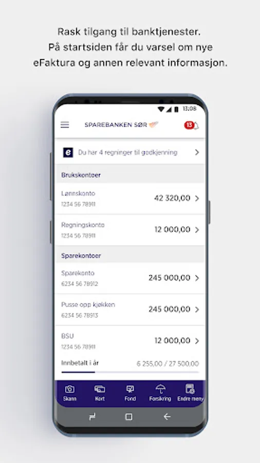 Make everyday life easier with the mobile bank from Sparebanken Sør. In the app, we have collected the services you need on a daily basis, such as checking balances, transferring money, scanning bills and much more.