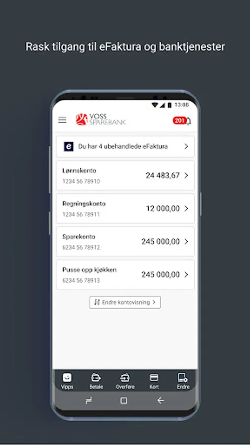 Makes the day easier with the mobile bank from Voss Sparebank. You can check your balance, transfer between your own accounts, pay bills and process eF invoice while on the go. Login is simplified with the use of 4-digit code or fingerprints.