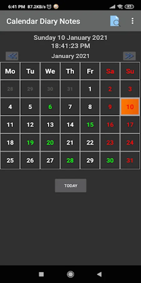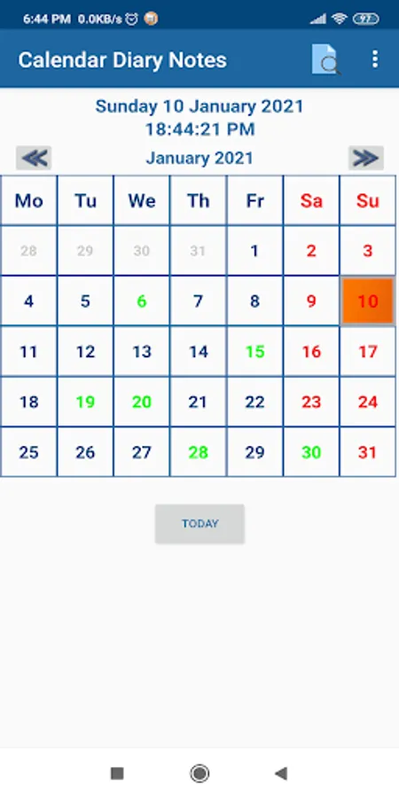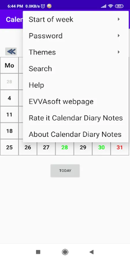 Calendar Diary Notes free application for Android for creating notes and reminders for selected dates in the form of a convenient calendar with advanced functions such as: