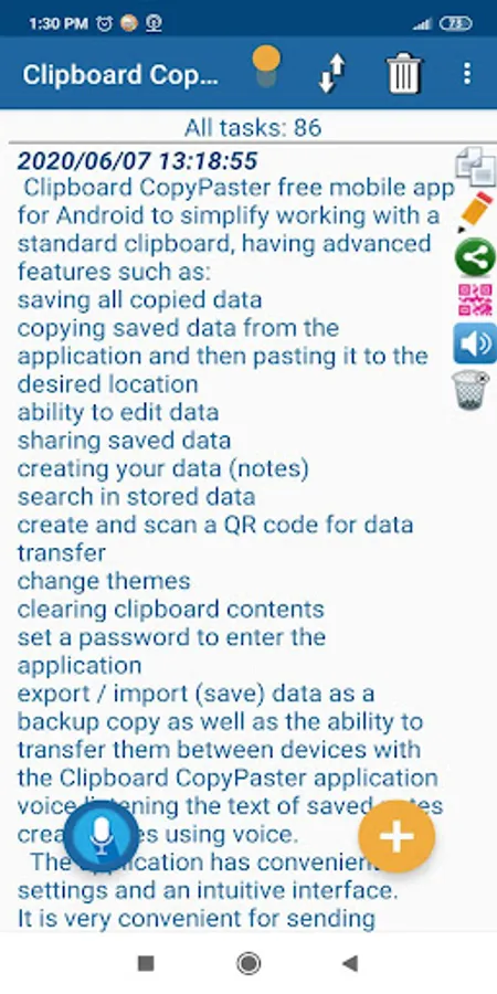Clipboard CopyPaster free mobile app for Android to simplify working with a standard clipboard, having advanced features such as: