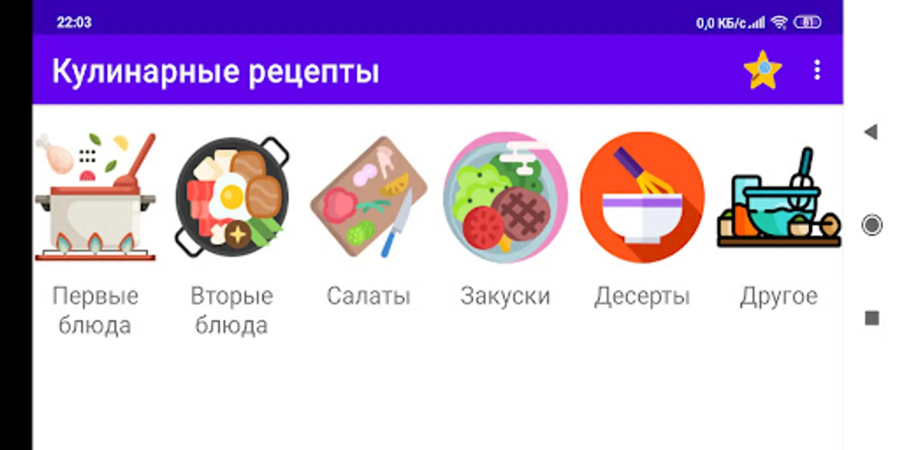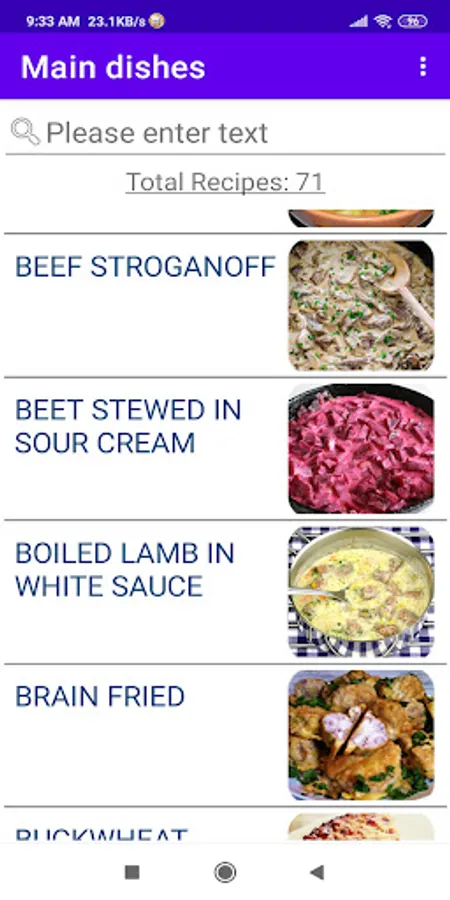After launching the application on the main page, you can select the category of interest and view all the recipes in the selected category. In the list of recipes, select the one you are interested in and a full recipe with a photo, a description of the preparation and a list of ingredients will be presented in a new window.
