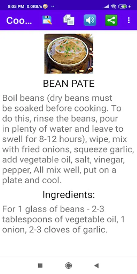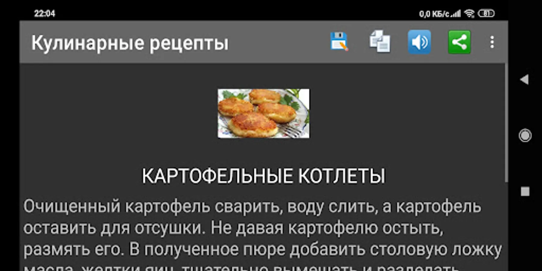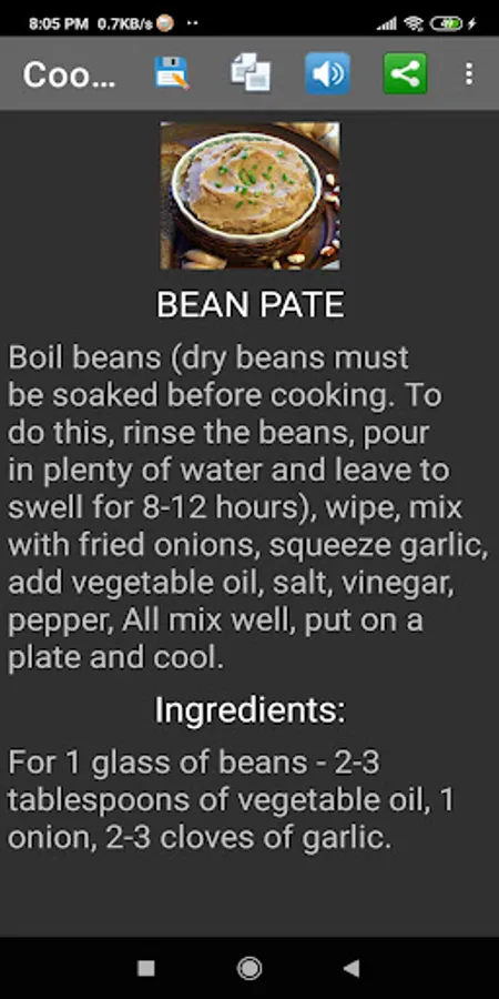 If you wish, you can save the recipe to your favorites, copy it to the clipboard, listen to or share the recipe (by selecting the appropriate icon in the application menu).