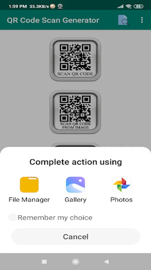 scan a QR code from a saved image of a QR code