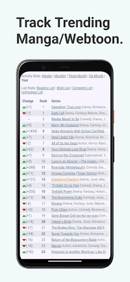 Discover, track, and research your favourite Manga/Manhwa, Authors, Publishers! Look at trending stats of genres based on your interest!