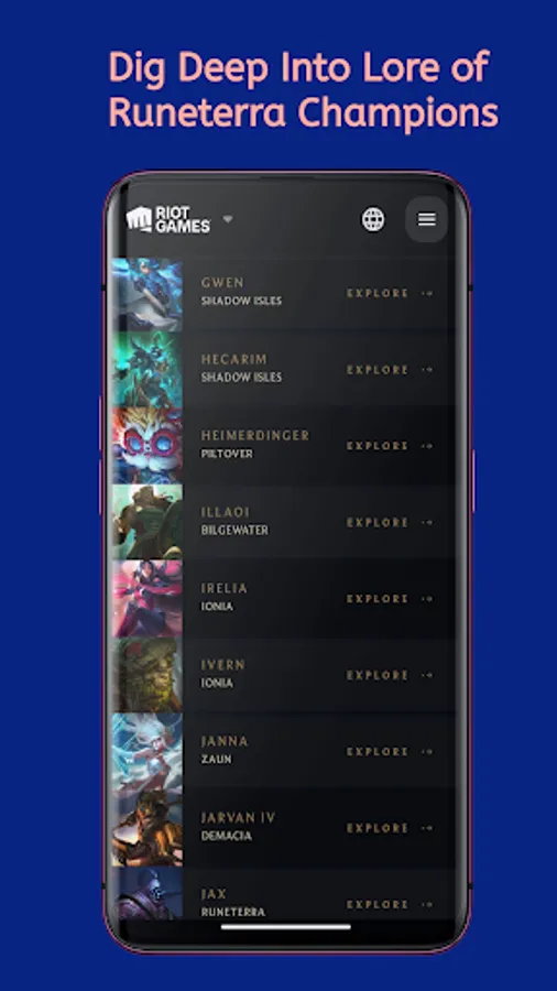 Discover, read, and dig deeper your favourite champions, regions, and lores!! This app fits your if you're new to League of Legends Universe like Arcane by Fortische or Ruination by Anthony Reynolds!
