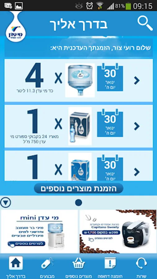 Application Eden is designed for existing customers, this app lets you know the day of distribution soon, expect a billing account and send them via email, contact customer service, to carry out an urgent, add wow to change the number to the mineral water distributed near future, adding a wide range of complementary products from water bottles school to .lhnot Lavazza coffee capsules special offers and even recommend to a friend. All delivery to the home and the touch of a button quickly and conveniently.