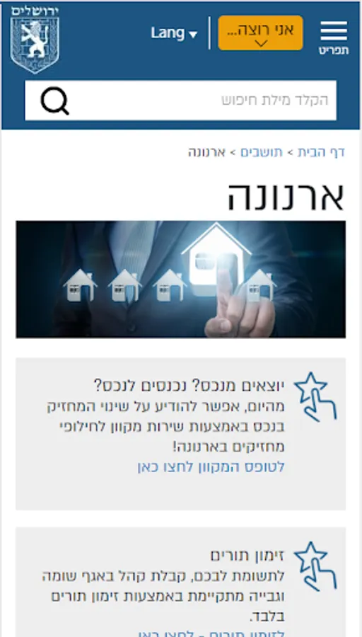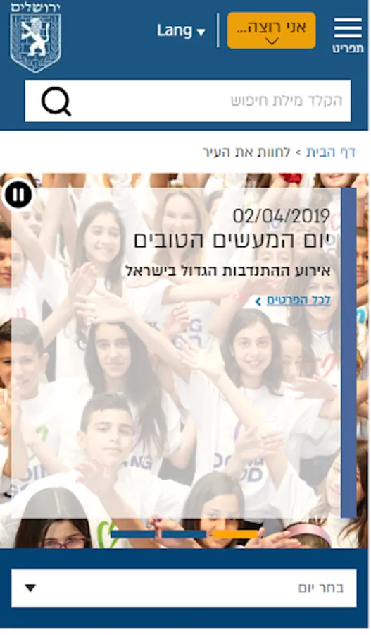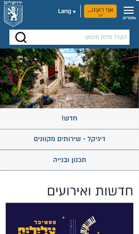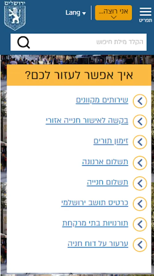 In the app you can find information about everything happening in the city. You can perform transactions such as various payments, filling out forms or reporting to the 106. The application contains information for residents of businesses and visitors, as well as general information about the city of Jerusalem. You will also be able to contact us and open calls to the City Center