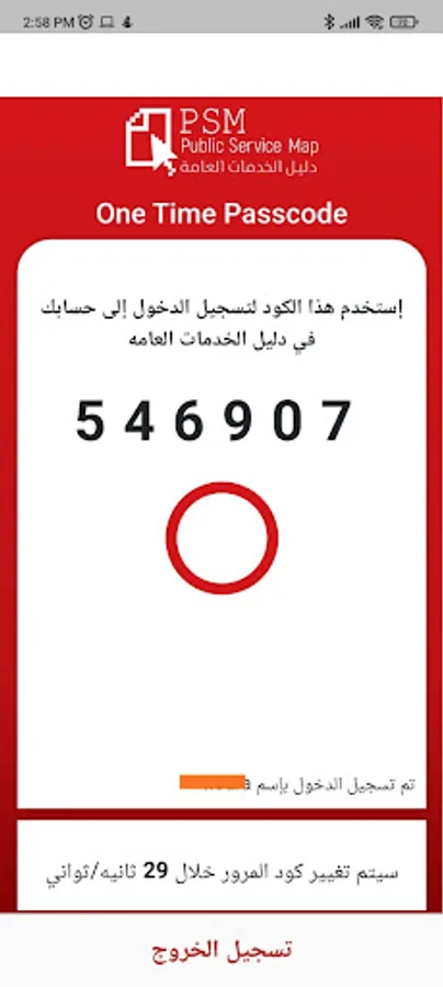 يمثل هذا البرنامج احد وسائل حماية المستخدم للدخول على حسابة الشخصي لدليل الخدمات العامة