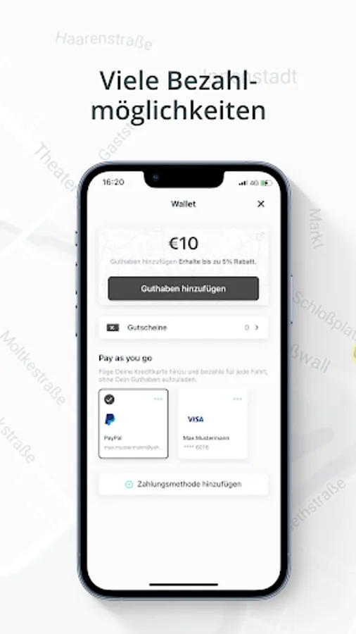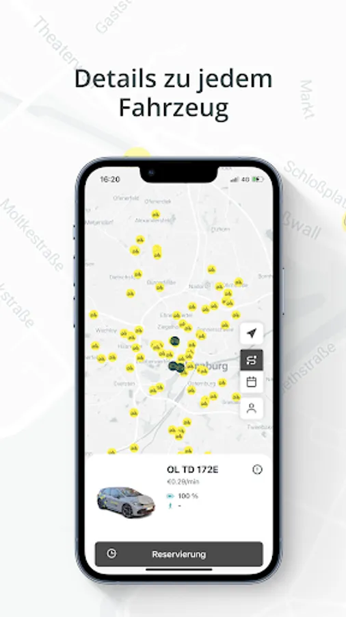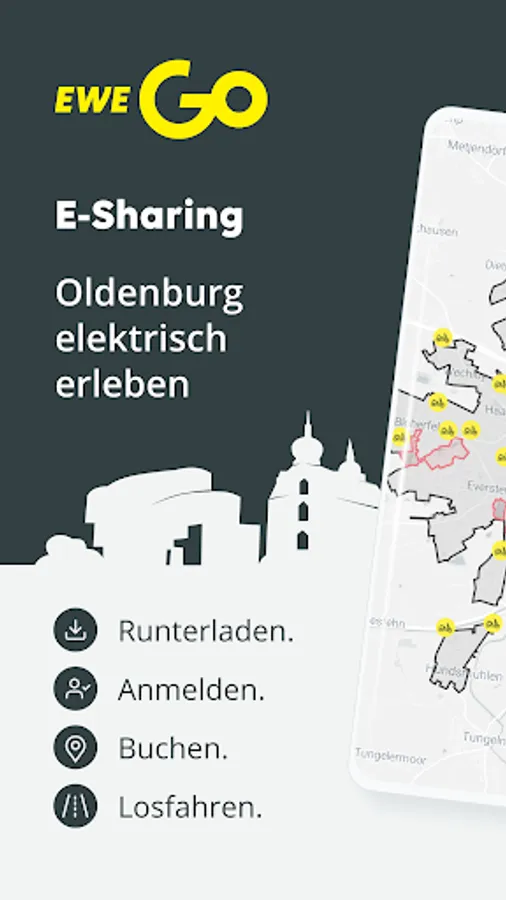 Our electric scooters are distributed throughout Oldenburg. You can use our EWE Go E-Sharing app to find the next scooter in your area, reserve it for 15 minutes and then book it