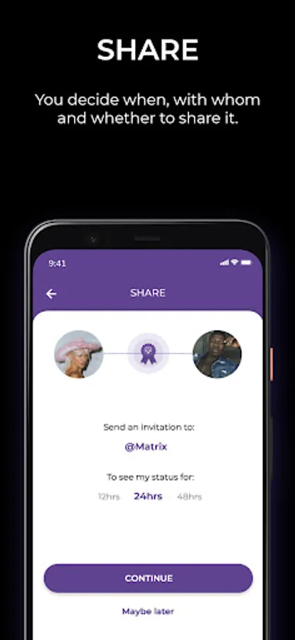 . With your results in place you can then share your verified status, if, when and with whom you want.
