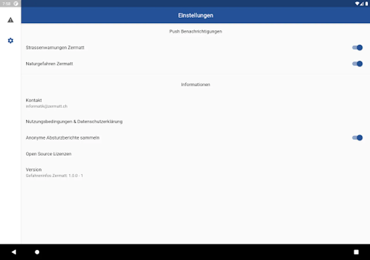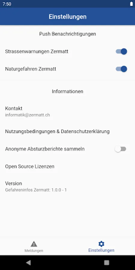 The danger information app of the municipality of Zermatt offers the opportunity to find out about current reports in the Zermatt area.