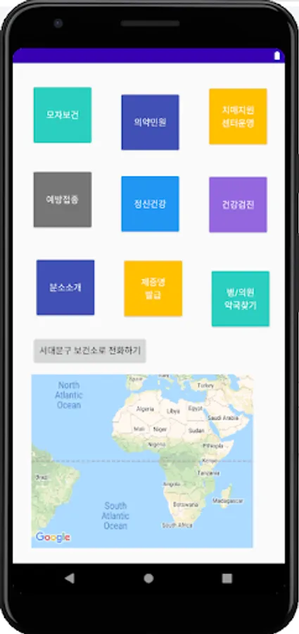 It connects to the Seodaemun-gu Health Center, and when you press the button, the corresponding web page appears. In addition, you can call the Seodaemun-gu public health center with the app by pressing the call button.