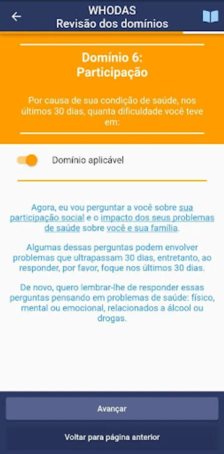 This application is the result of a development project authorized by the World Health Organization (WHO) (authorization 317992) seeking to offer a faster and more practical strategy for the application and scoring of World Health Organization Disability Assessment Schedule (WHODAS) scores. This project makes available an app aimed at facilitating the assessment of functionality in scenarios such as clinical practice and research.