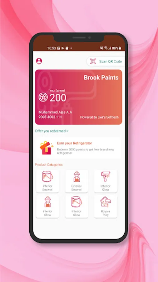 Brooke Paints is a QR-based mobile application powered by Ewire Softtech Pvt. Ltd. Painters can conveniently scan QRs and earn points using this application without any third-party intervention. All you need to do is scan the QR on the product to earn points and redeem them later for exciting rewards.