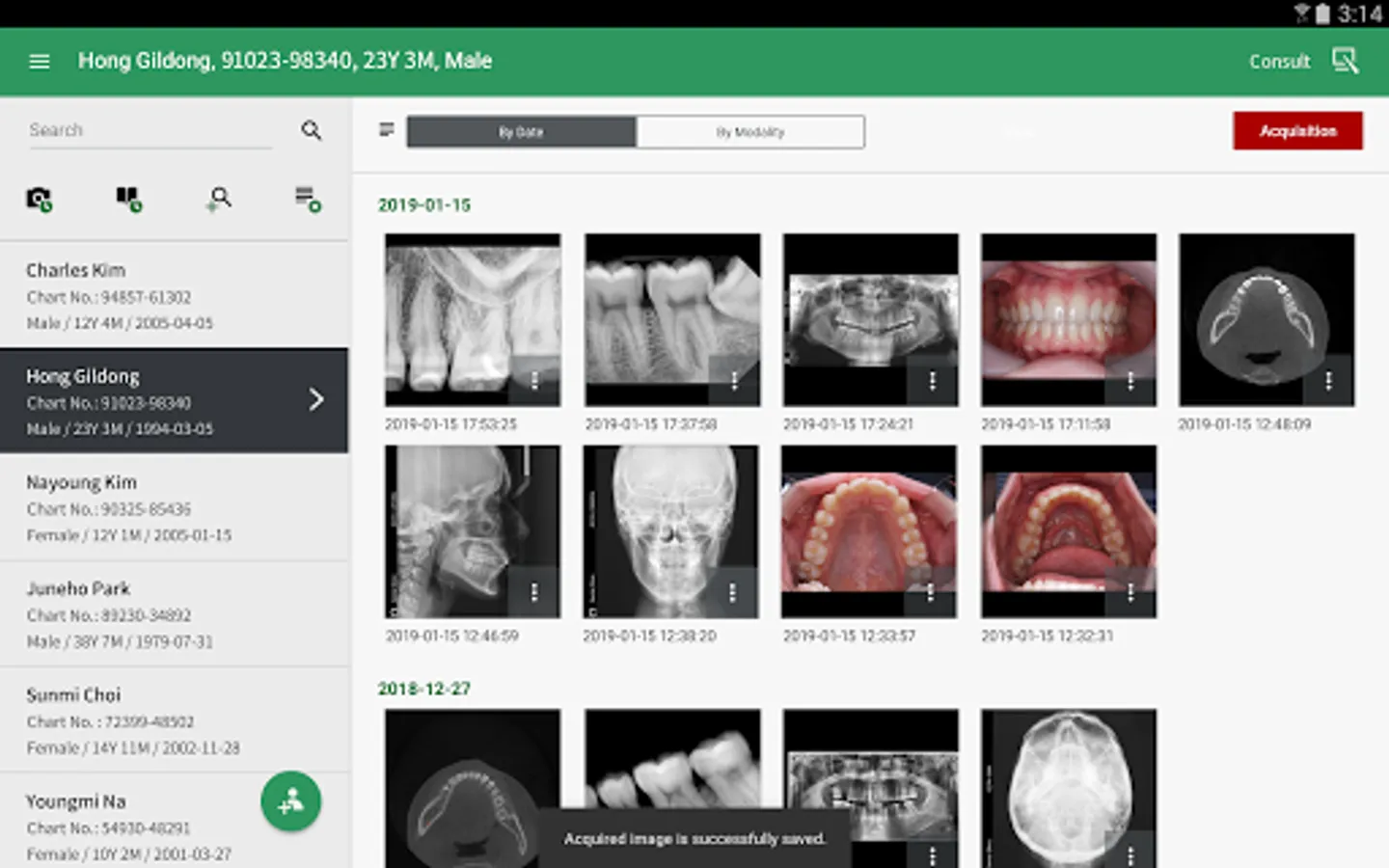 - After the completion of capturing, this app is automatically closed. The captured image can be viewed and managed with patient information from EzMobile.