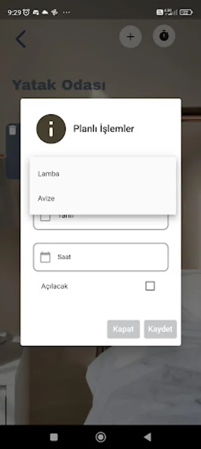 With this app you can control your home's lights and sockets. You can create a schedule and turn it on and off at the time and date you want.