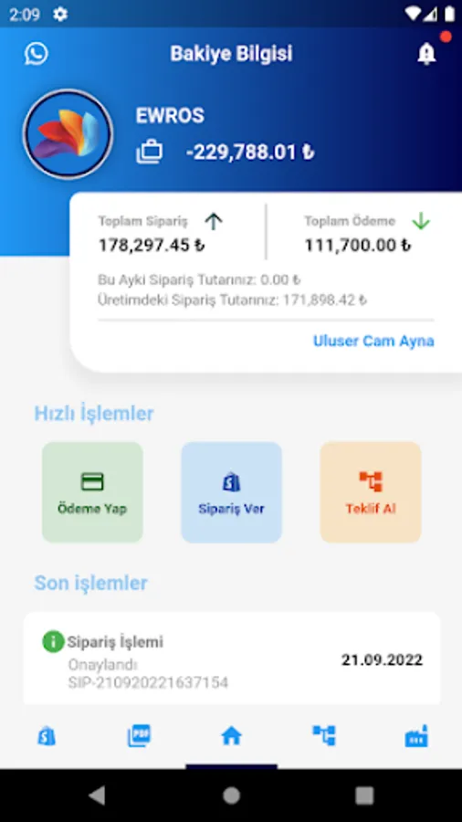 Thanks to this application, Uluser Glass and its customers can manage their business processes instantly and effectively.