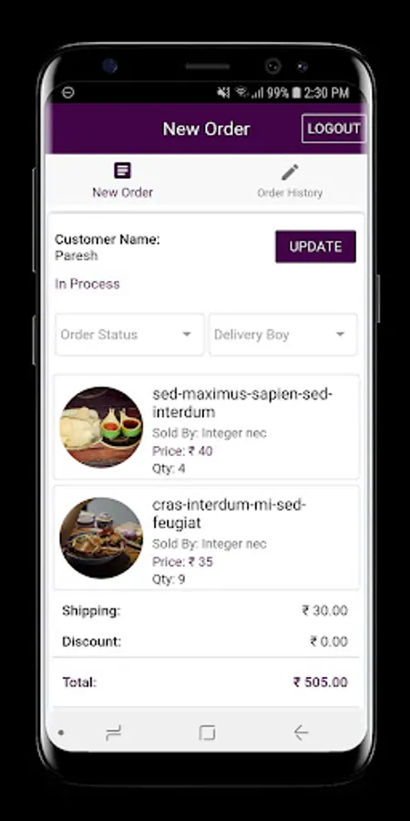 This is the admin app for purple food. The admin can easily make an account and manage the order seamlessly. The admin can accept and reject new orders from the customer and can check the customer address on the map.