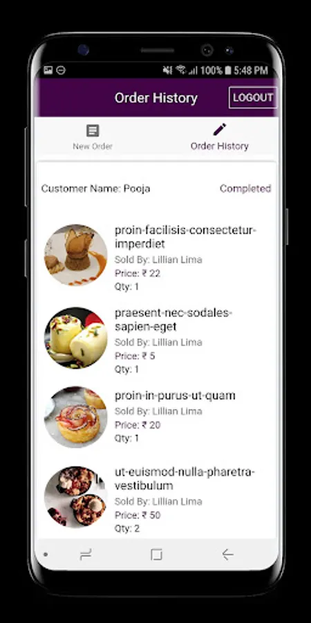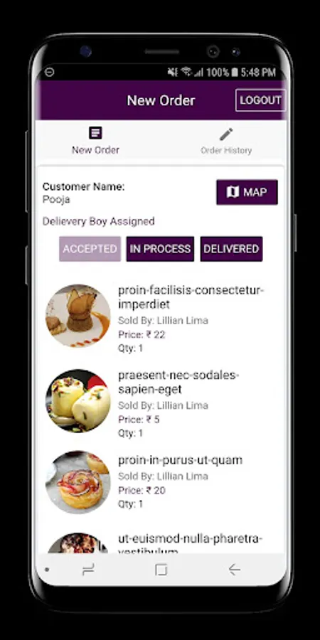 The delivery person can accept and reject the order as per the availability and The order history section will have the details of previous orders and transactions.