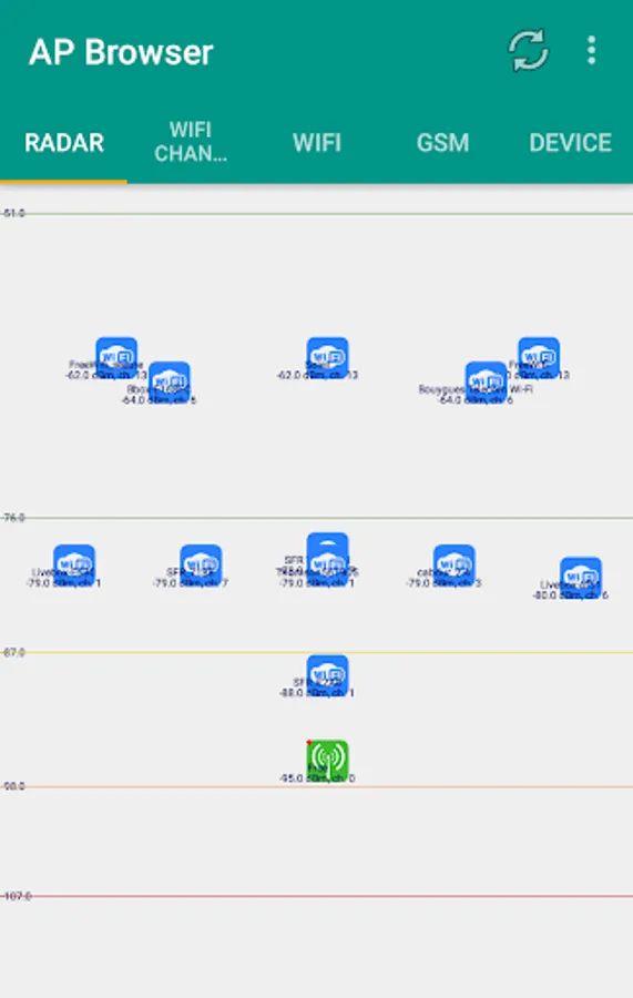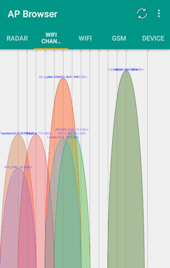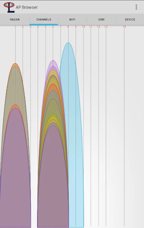 - It analyzes the WiFi channels and it shows the signal strengths;