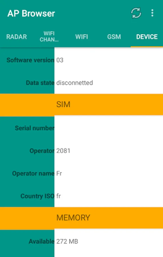 - It browse the telephone cells, and it shows some more information (GSM, UMTS, ...) not directly available, as the SIM card IccId, country, ....