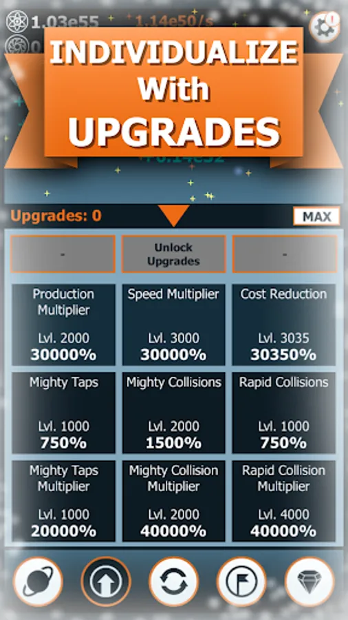 • Upgrade all of your objects in various ways! You will be given multiple options to choose from and you can make your universe unique to you!