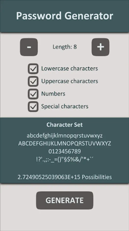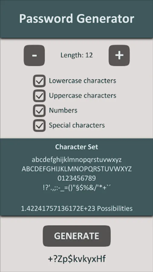 Lenghts reach from 1 to 64, the charset can have up to 86 different characters.