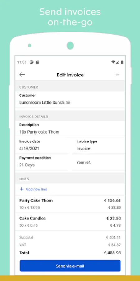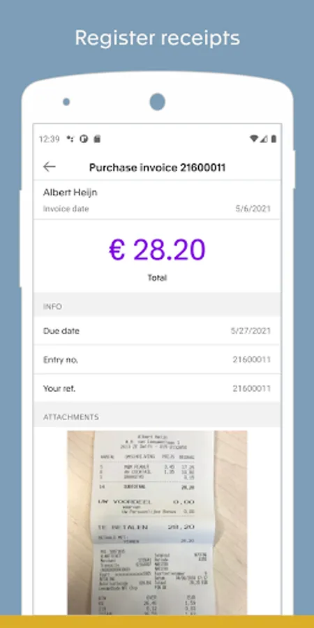· Take a picture of an invoice or a receipt in the app, and your accountant can process it instantly.