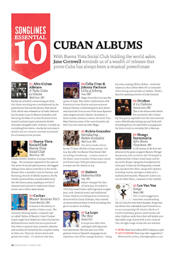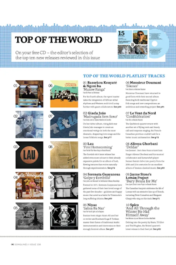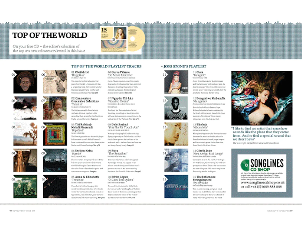Songlines was launched in 1999 and is the definitive magazine for world music – music that has its roots in all parts of the globe, from Mali to Mexico, India to Iraq. Whether this music is defined as traditional, contemporary, folk or fusion, Songlines is the only magazine to truly represent and embrace it. However, Songlines is not just about music, but about how the music fits into the landscape: it’s about politics, history and identity. Delivered in both print and digital formats, Songlines, through its extensive articles and reviews, is your essential and independent guide to a world of music and unique culture, whether you are starting on your journey of discovery or are already a seasoned fan.