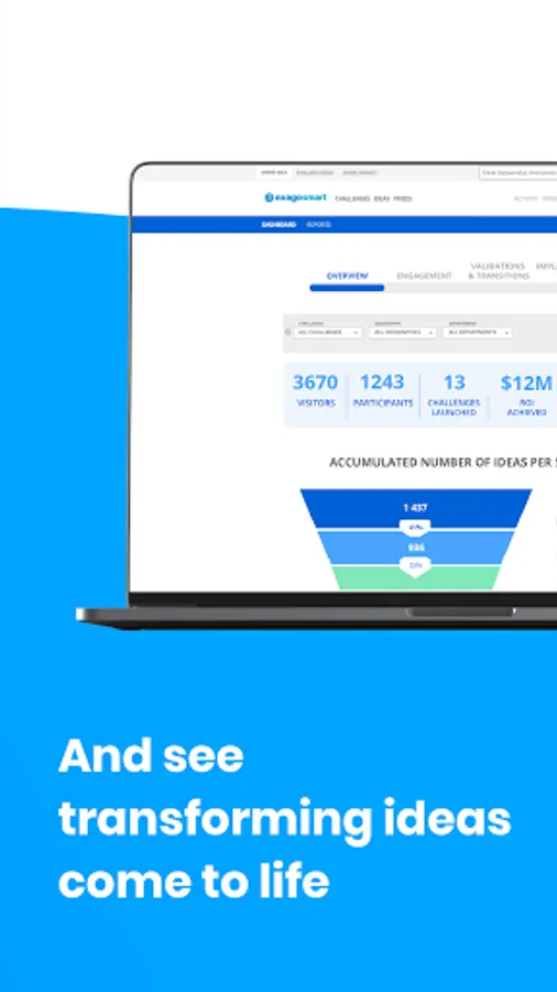Exago Smart enterprise-grade innovation software is trusted by Fortune500 and top firms worldwide. The feature-rich, US-patented solution activates company's collective intelligence to boost innovation growth. Get Exago Smart for Employee Innovation Programmes, Continuous Improvement Initiatives, Internal Hackathons and End-to-end Innovation oriented to ROI.