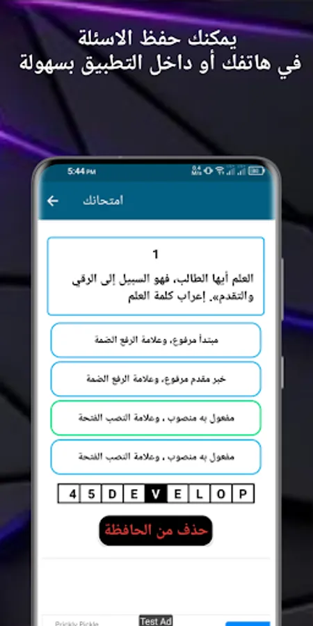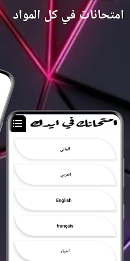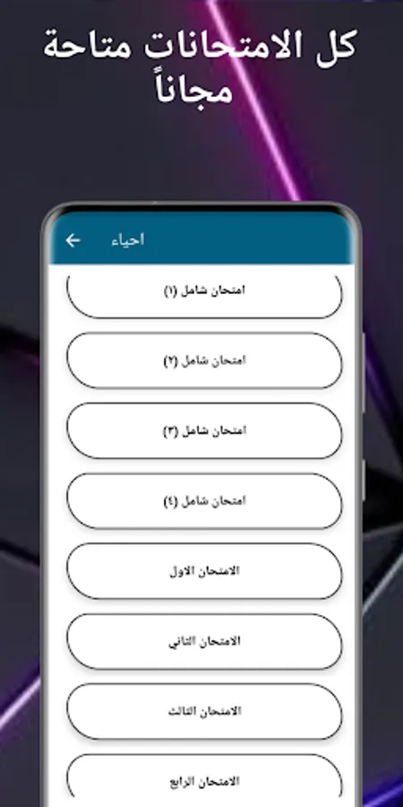 In the educational application (Your Exam) for students in the third year of high school, after reviewing the chapter, you can solve an exam on this chapter and see the percentage of your study and know the mistake and many different ideas, as it contains a large number of different tests on the entire curriculum, and more will be added with the next updates