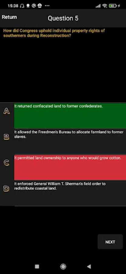 The US History app lets you practice facts about US history that are typically part of the curriculum for students in 6th through 8th grade.