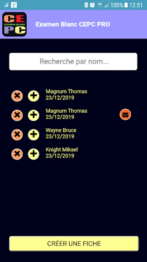 Easy to use, just fill in the form and send the result to the student in 1 click. While the student receives an email containing the details of his assessment, the various files are stored in the application on the teacher's phone in the form of a drop-down list sorted by dates with the possibility of searching for the students by name.