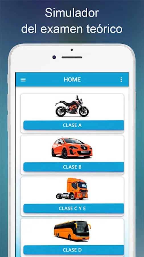This theoretical driving test simulator contains questions from the study material (Driver's Manual), the same ones that may appear in the theoretical test of the Class A, B, C, D and E category so that you can obtain the registration or license. in any city in Argentina.