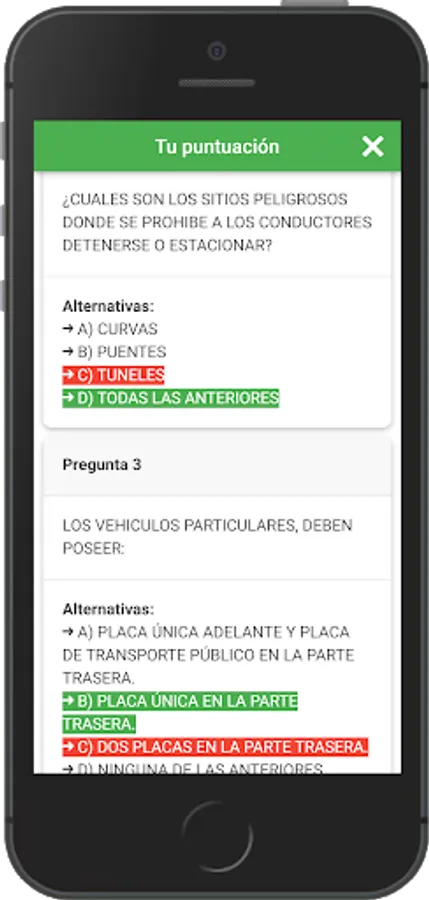 At the end of the testyou will get your score and you will have the possibility to check the questions you got wrong, with which you can evaluate your progress.