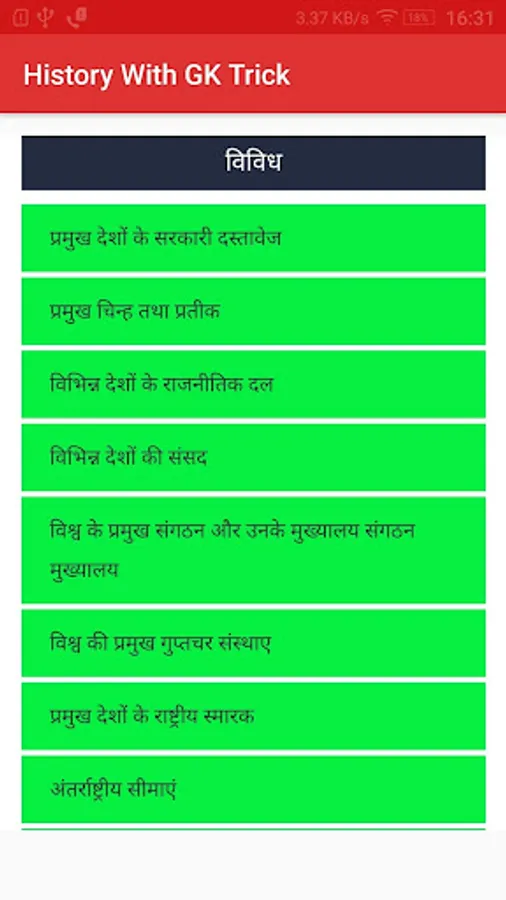 This app provides a comprehensive approach to the various aspects of Indian history like Ancient , Medieval & Modern history , world history and history related trick in hindi and will be useful for various competitive examinations and also the state civil service examinations.