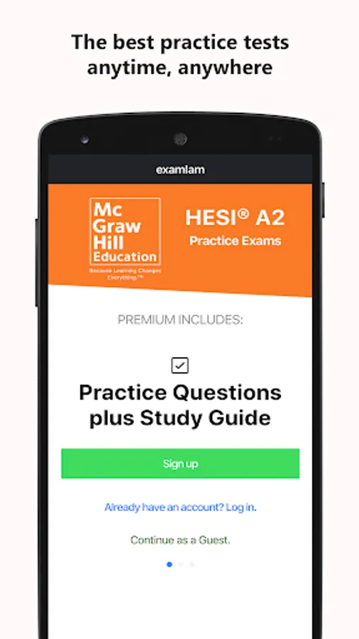 To keep prepping for the HESI exam, upgrade to our Premium account to unlock an additional 1,200 practice questions straight from McGraw-Hill Educations HESI Review and HESI A2 Practice Test books. You can prep with these questions in full exam mode, as individual section quizzes, or as flash cards. We help you organize your study time by generating a custom schedule based on your target test date. In addition to all this, we include McGraw-Hill Education's complete online HESI A2 Review book. You'll have everything you need anywhere, anytime.