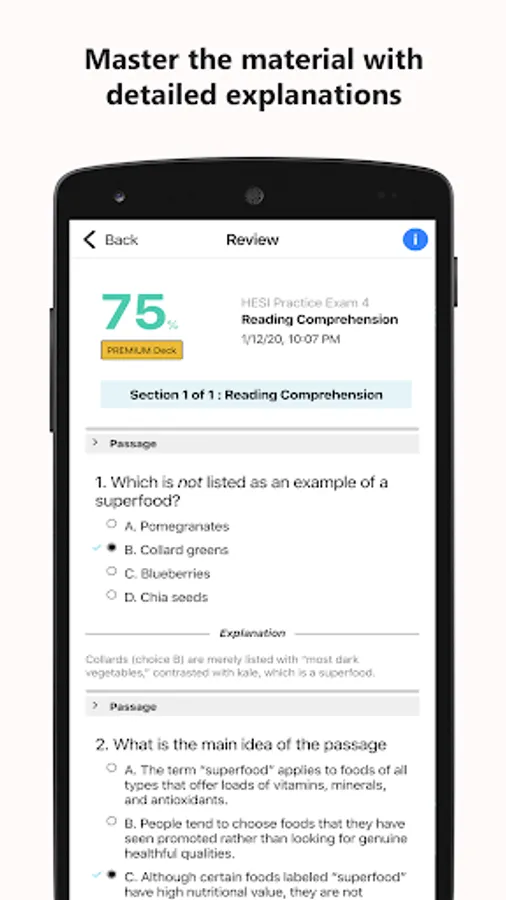 Getting stuck on a specific question? We have full explanations for every question you see, so you'll understand the meaning behind the right answer.