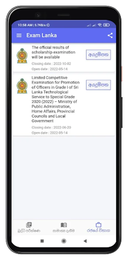 EXAM LANKA application is developed for advanced competitive exams conducted in Sri Lanka.