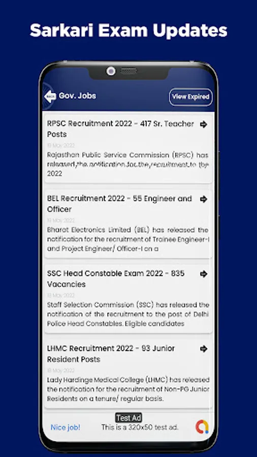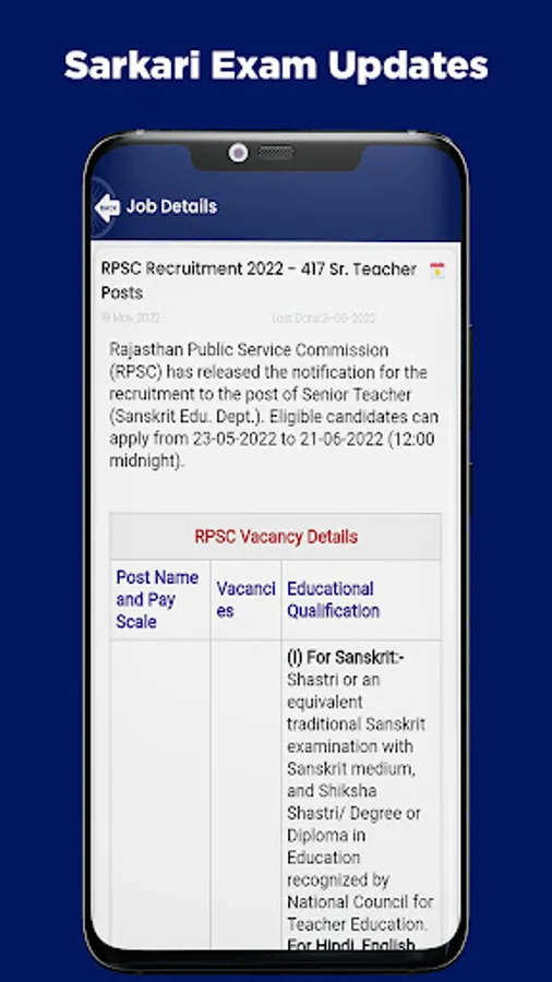Sarkari Exam app Provide detailed information and notification of Latest Online Forms, Job's Exams, Admit Card, Result, Answer Key, Admission & other various posts.