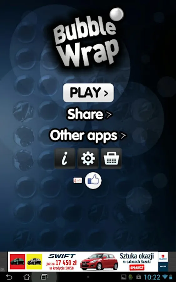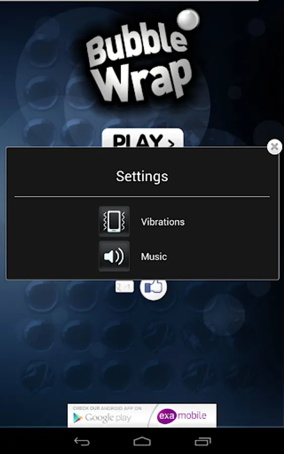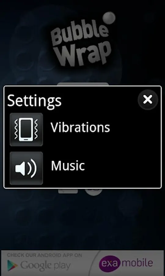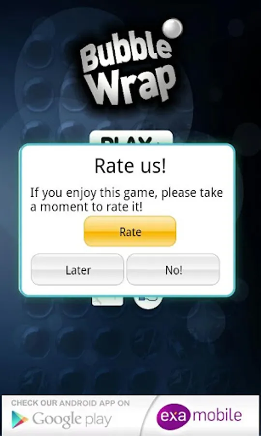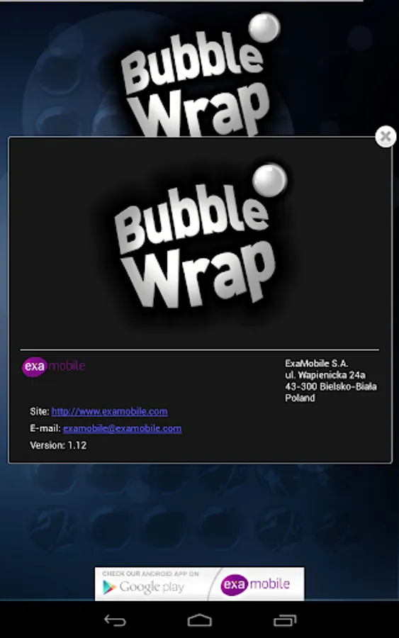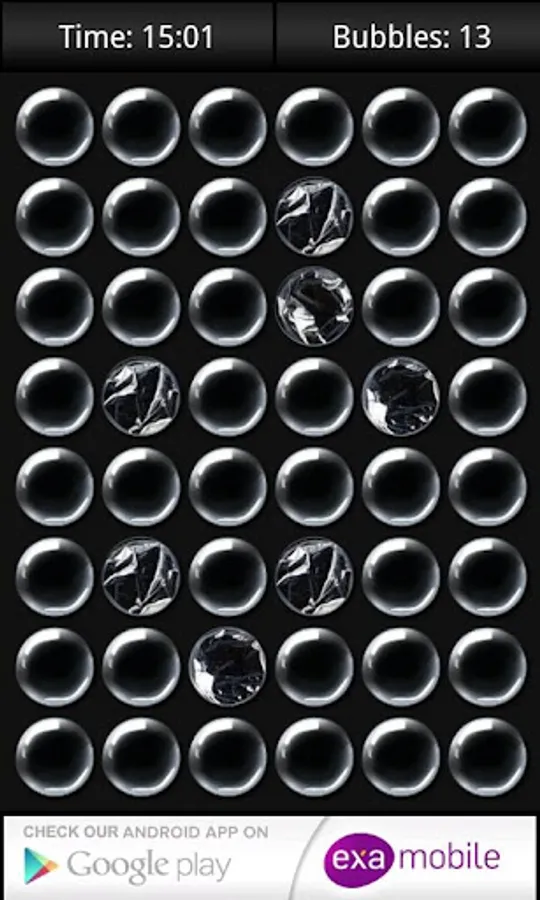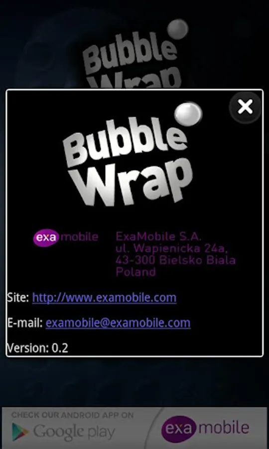 In case the app doesn’t work correctly, before you give us low rating, please fill in a short survey at http://examobile.com/bubblewrap/ and report the bug.