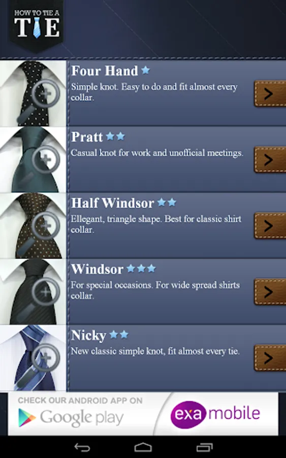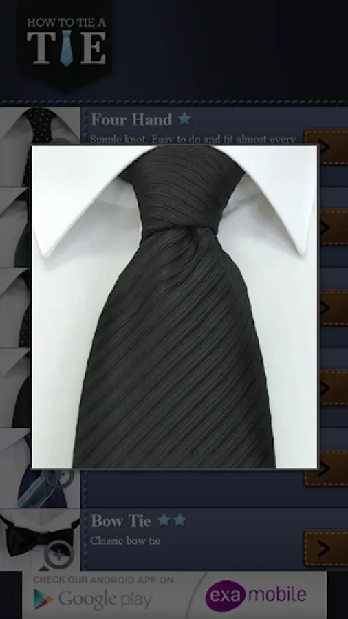 The need for tying a tie may surprise you, when you will not expected it. Your phone is always with you - therefore we recomended install this application and save for the future - you will see, I'm sure come in handy and will save you out of trouble !