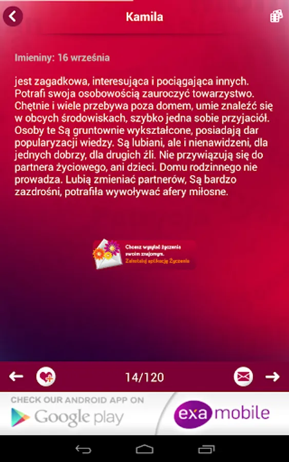 Dodatkowo aplikacja Znaczenie Imion umożliwia: