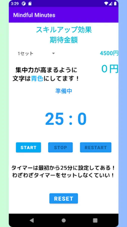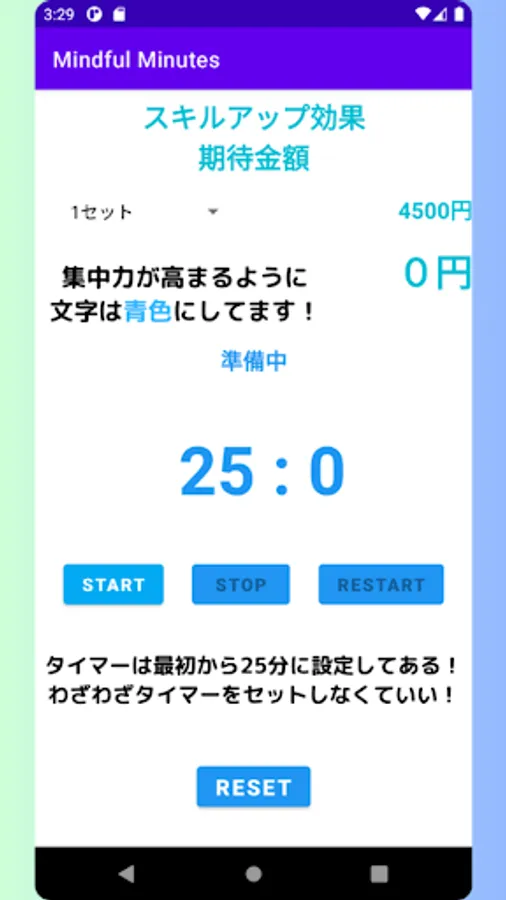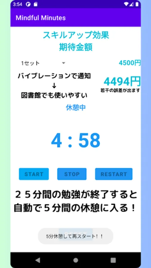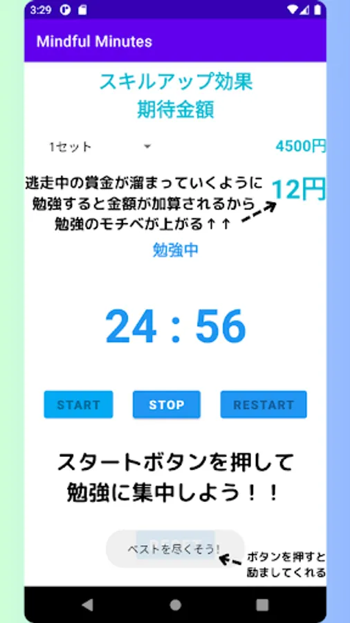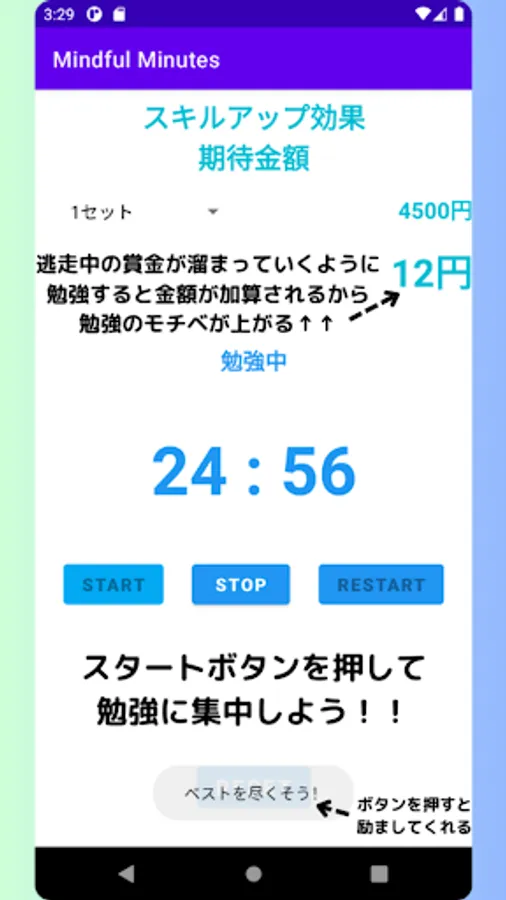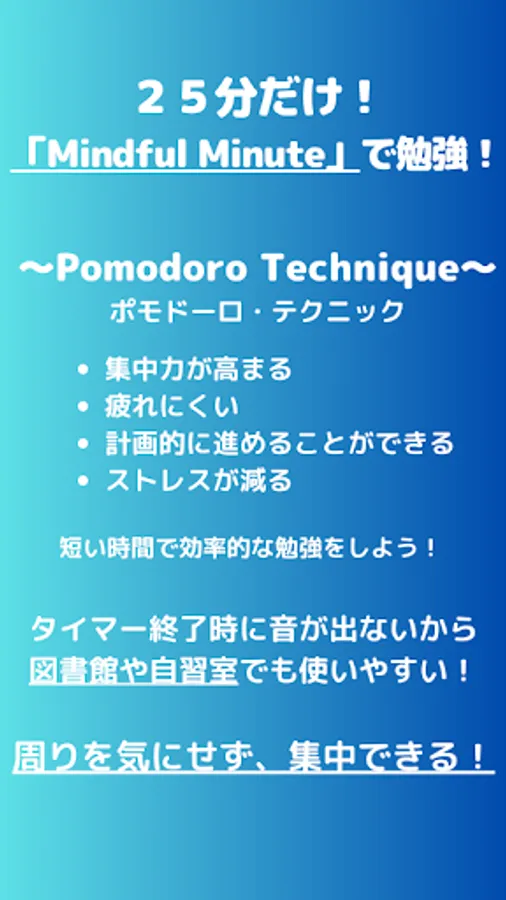 "Mindful Minutes" has very few features. But there shouldn't be so many things you need to do your best to study. By omitting useless functions, it is easier to use!