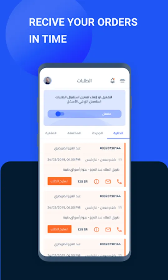 The application helps you find available orders in your current area, you can view the user's location on the map, and then approve the application for execution.