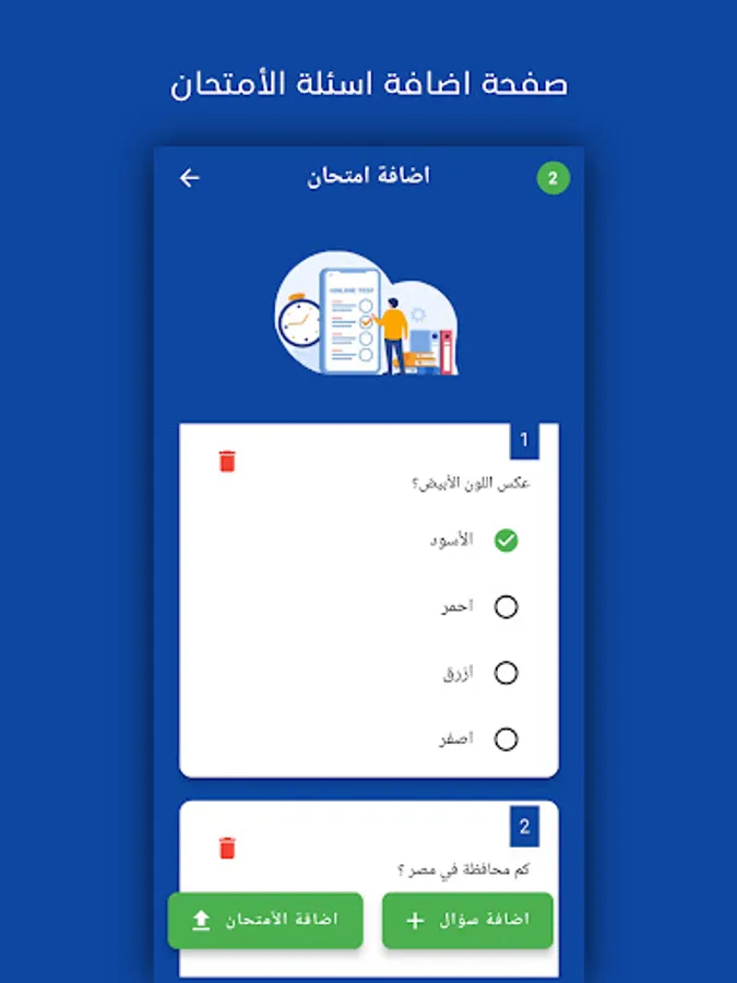 صمّم امتحانات مخصصة تناسب احتياجات الطلاب المختلفة، وقم بتنظيمها بسهولة تامة. قيّم تقدم الطلاب وقدم ردود فعل فورية لتعزيز عملية التعلم. بالإضافة إلى ذلك، يمكنك تسجيل الحضور والغياب بطريقة مريحة ومنظمة، مما يُسهم في إدارة الفصول الدراسية بكفاءة عالية.
