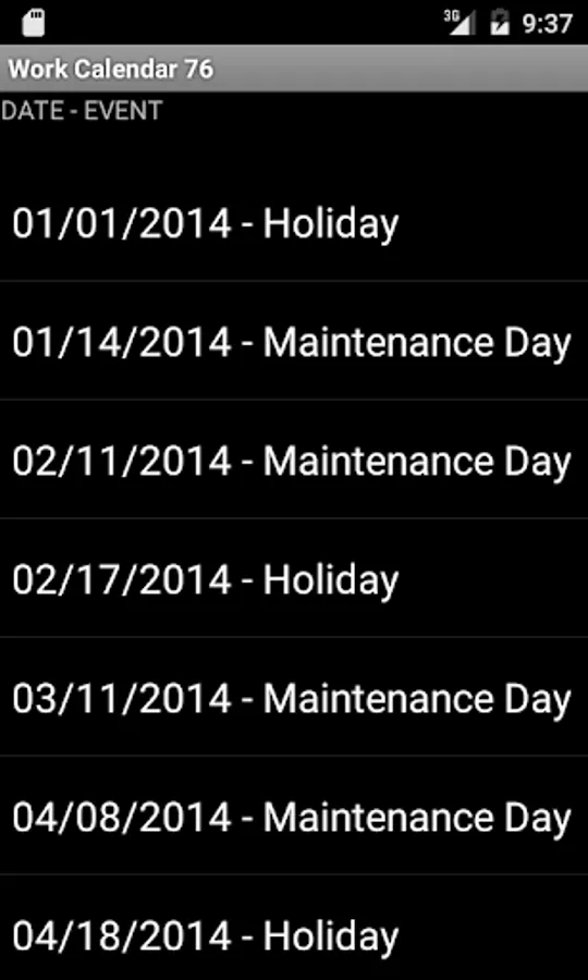 - A tap under the calendar will bring up a menu for a list of saved events which can be used to delete events if needed. - A work stats menu item which might be useful for some individuals.