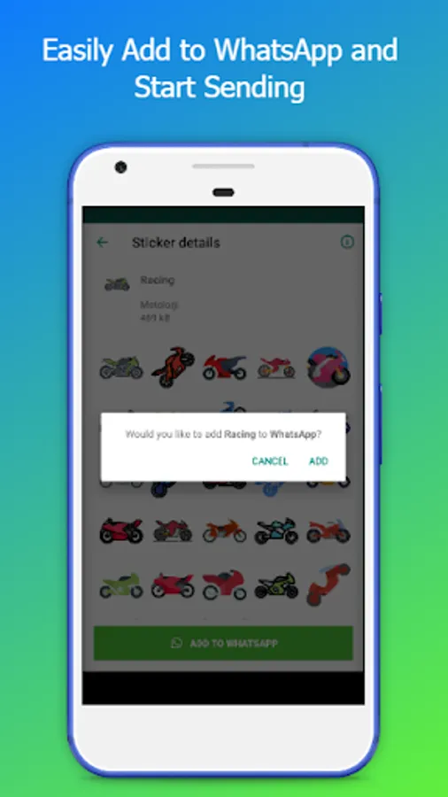Motolorji Sticker Packs app made by Motolorji is 100% compatible with WhatsApp. You can send stickers to your friends by adding them to WhatsApp right away.