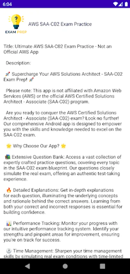 Please note: This app is not affiliated with Amazon Web Services (AWS) or the official AWS Certified Solutions Architect - Associate (SAA-C02) program.
